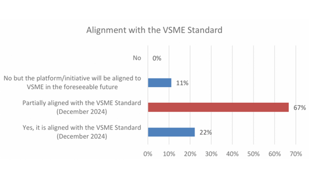 W dniu 25 września, EFRAG udostępnił dwa opracowania: pierwsze „Mapping of Digital Tools. VSME Ecosystem”, drugie „Mapping of Digital Platform and Initiatives for SME Sustainability. VSME Ecosystem”. Z opublikowanych danych wynika, że aktywnie działają co najmniej 223 platformy cyfrowe, nie tylko w Europie, ale także Afryce, Azji, Australii z Oceanią i obu Amerykach, których twórcy deklarują zgodność z raportowaniem VSME. Na podobnej zasadzie EFRAG zmapował też około 100 różnego rodzaju narzędzi elektronicznych, które wspomniane platformy udostępniają do opracowywania lub ogłaszania dokonań firm w obszarze ESG (i jednocześnie pokrywają się w różnym stopniu z podejściem zgodnym z VSME).